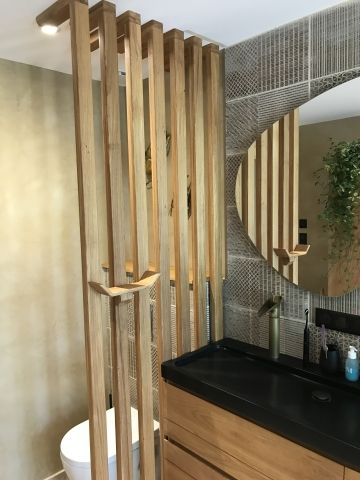 Ce claustra conçu selon l'idée de la cliente est fabriqué de sorte que les 6 autres petites étagères peuvent facilement être installées par les clients aux endroits de leur choix.