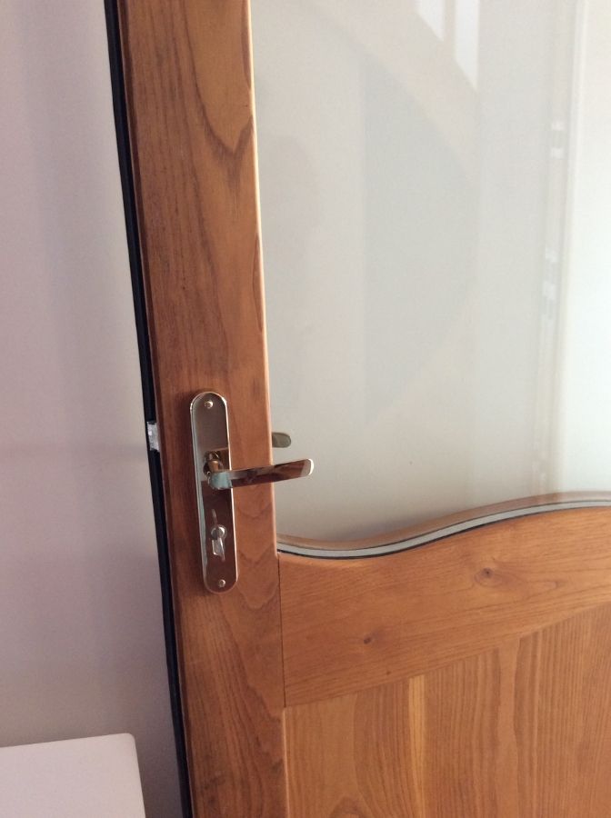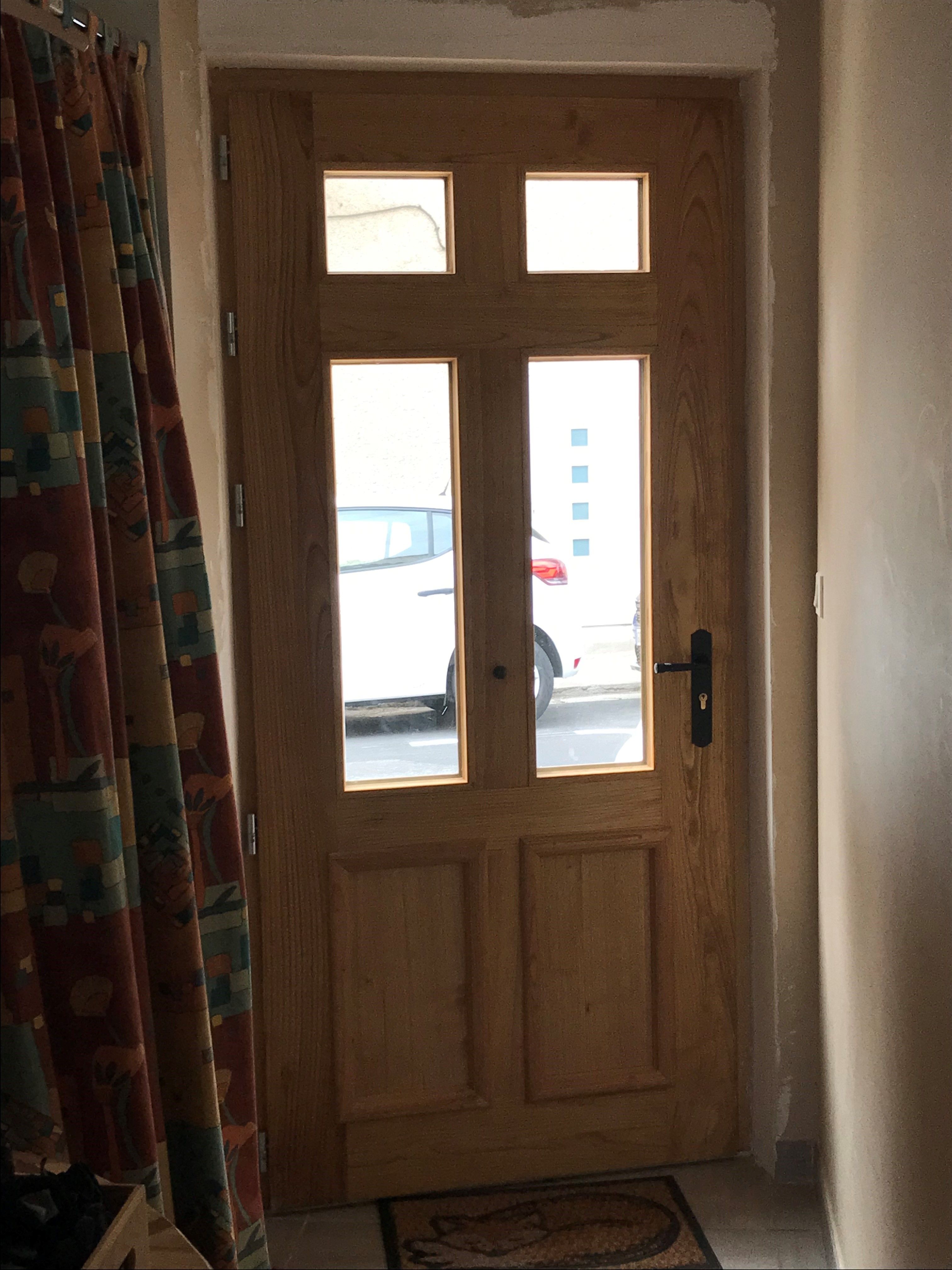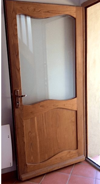 - Porte d’entrée en châtaignier, double vitrage réflecteur et retardataire d’infraction,