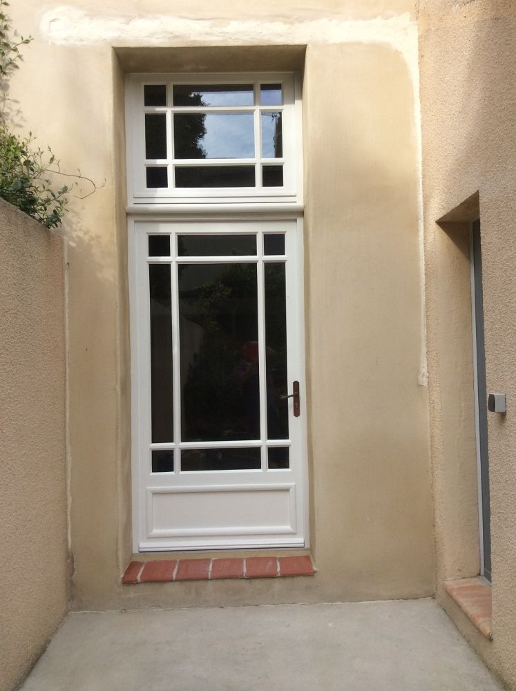 - Moustiquaire avec imposte, peinture assortie aux volets