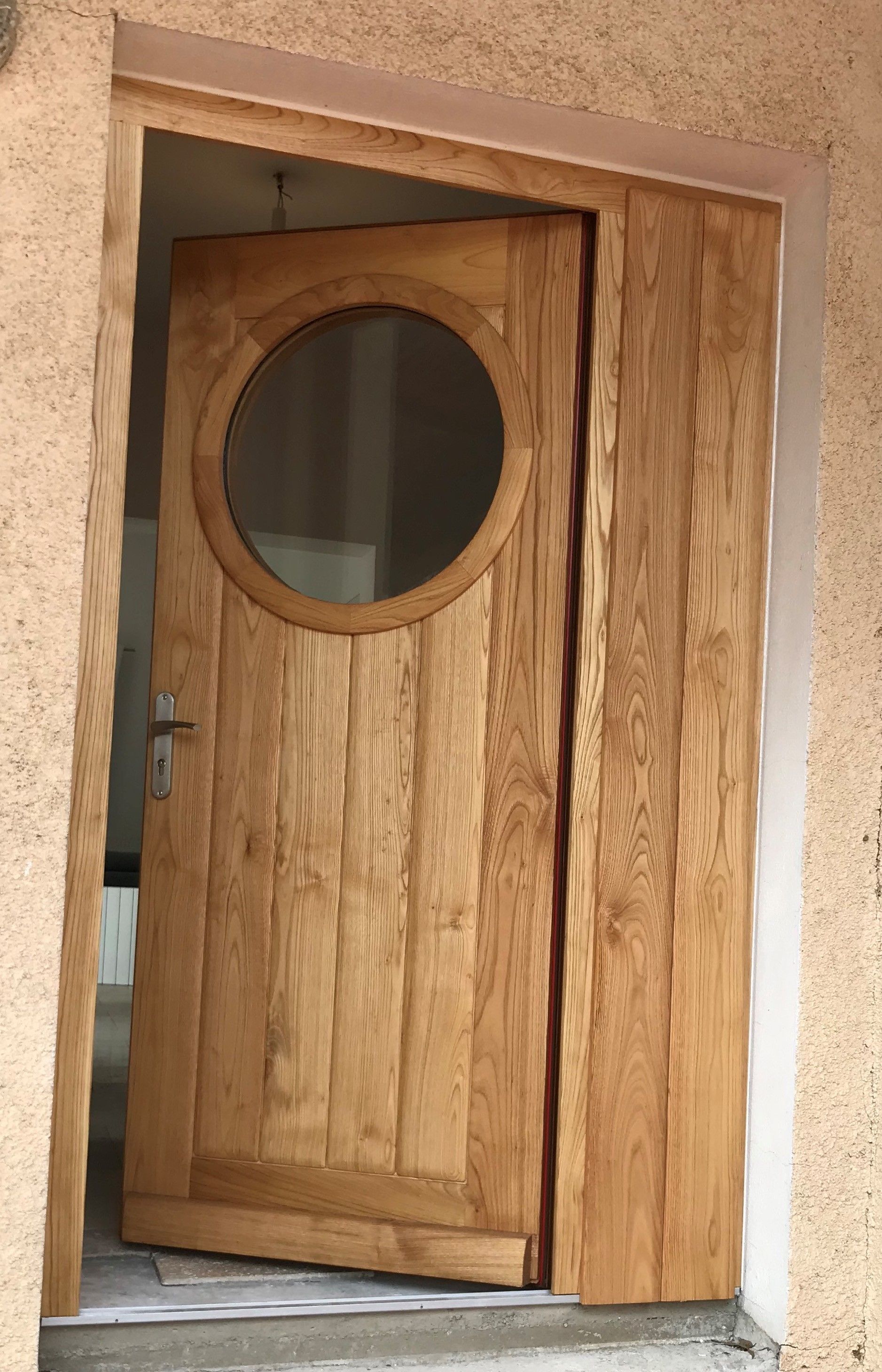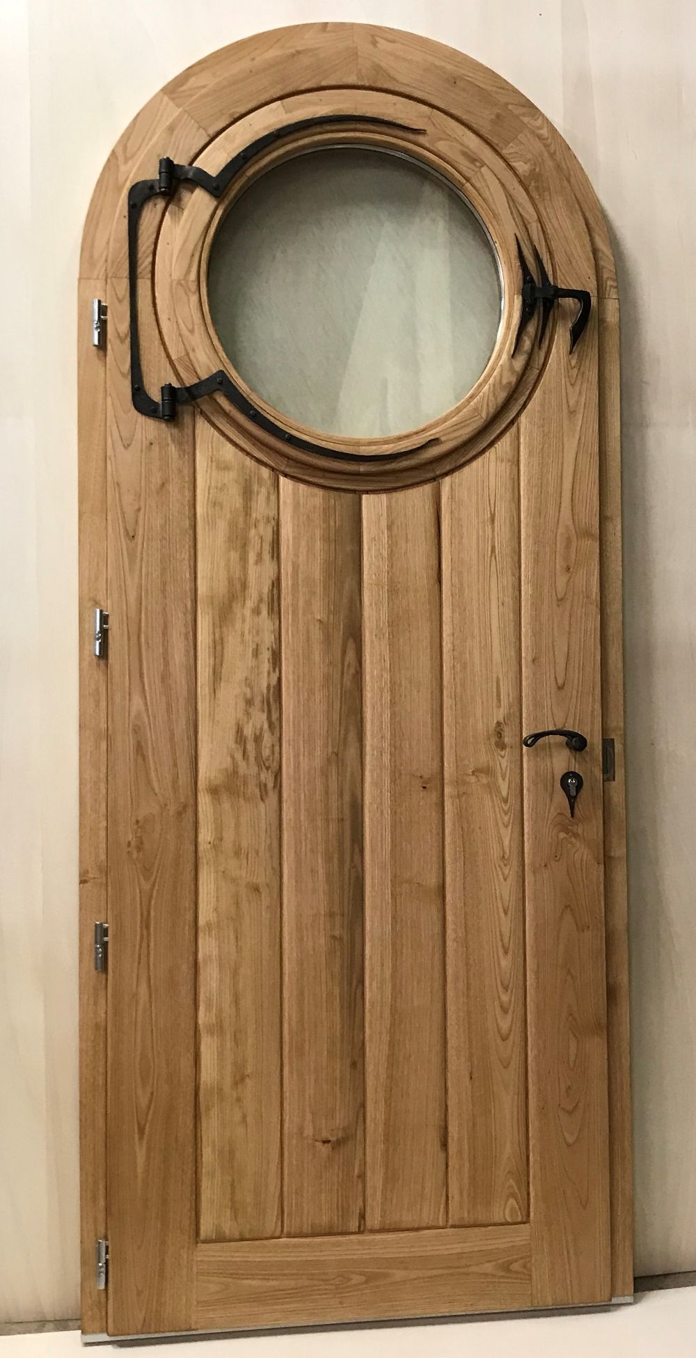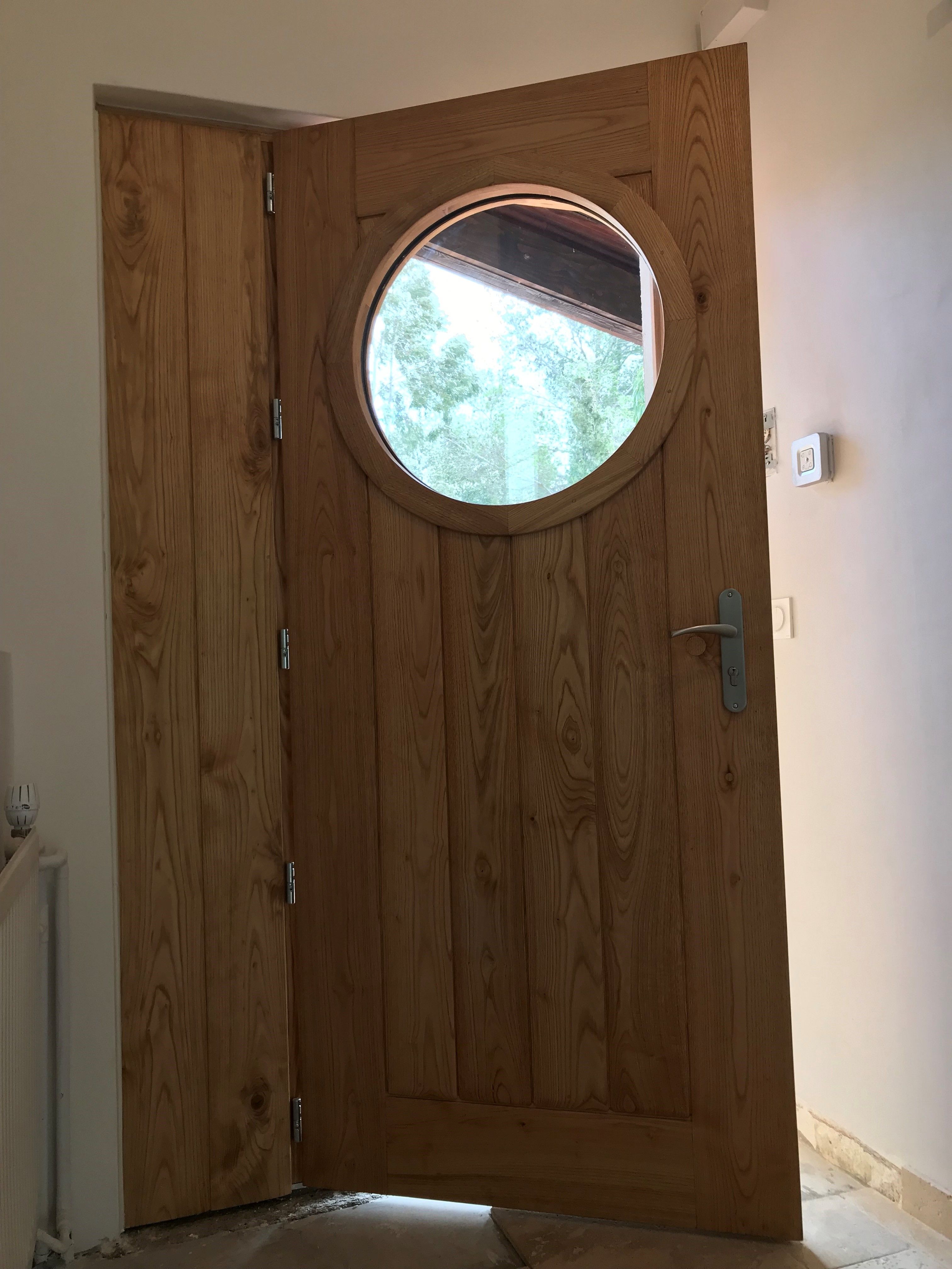 - Porte en châtaignier avec fenêtre ronde ouvrante