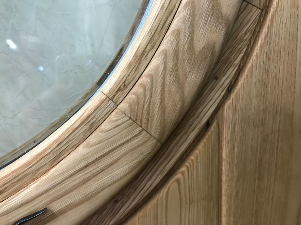 - Porte en châtaignier avec fenêtre ronde en double vitrage