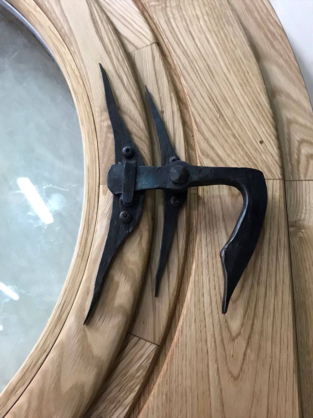 avec charnières, poignée et décoration en fer forgé vue extérieur et intérieur