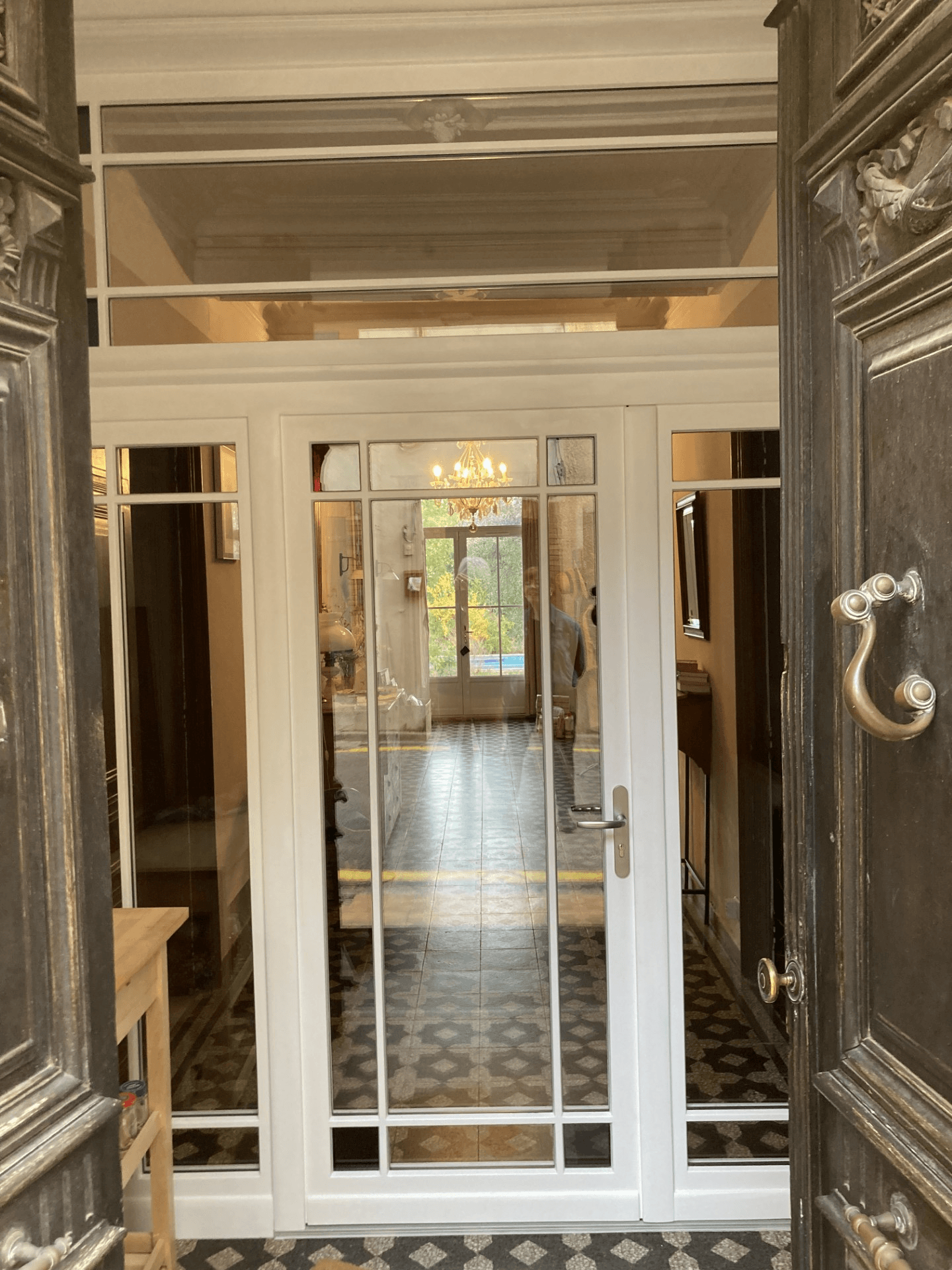 Porte vitrée avec imposte et cloison vitrée